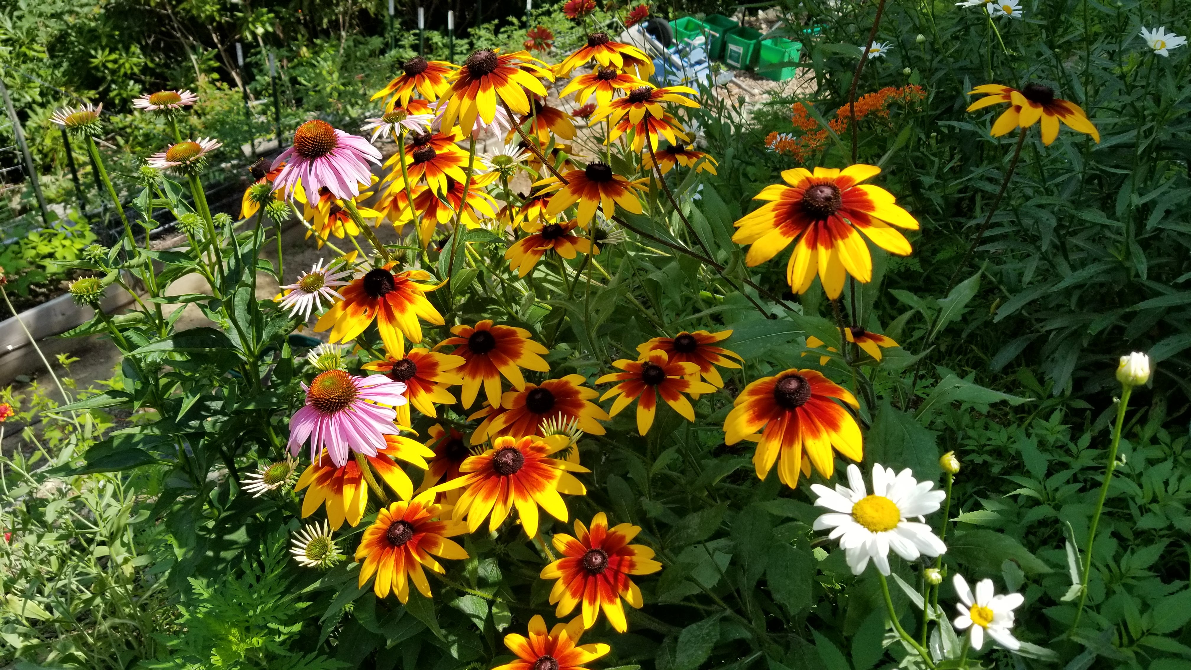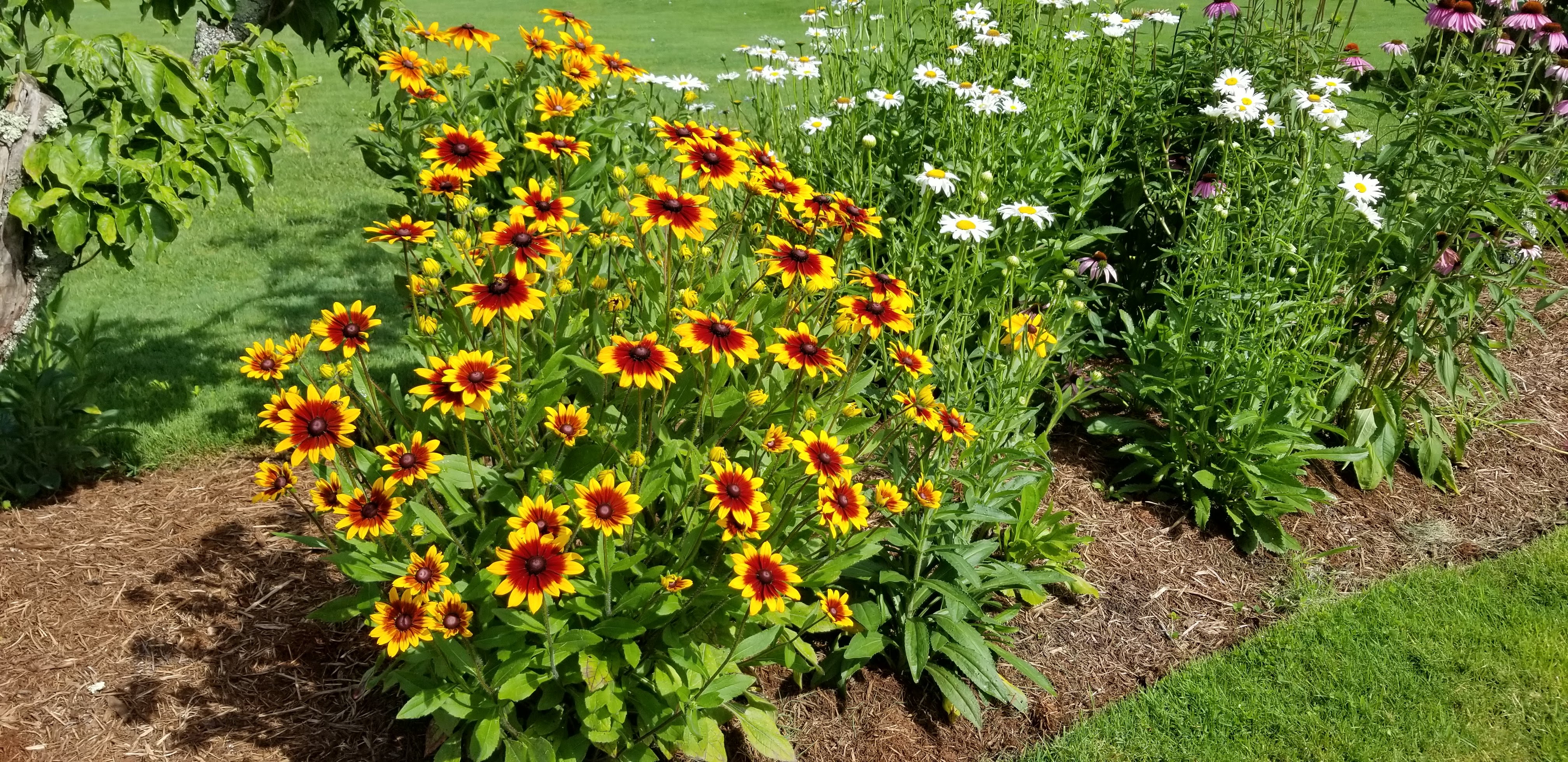Black-eyed Susans, coneflowers, and Shasta daisies mingle for a pollinator-packed tapestry—our nod to heirloom prairie color with modern maintenance.
